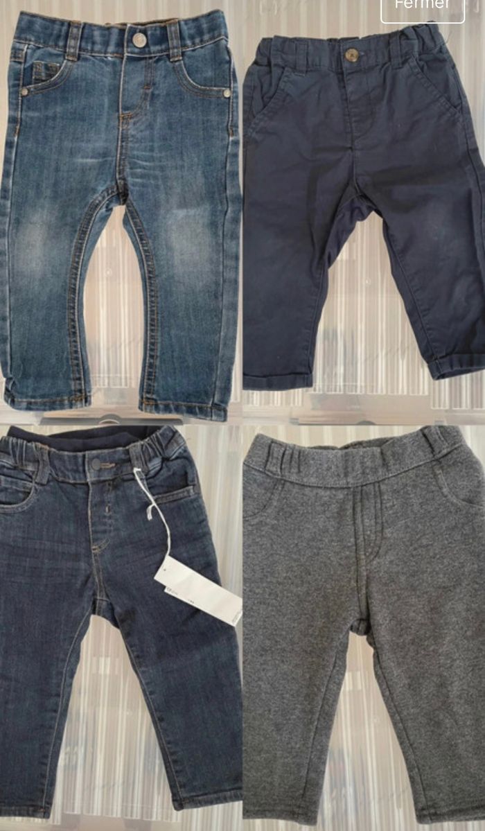 4 pantalons 12 mois (kiabi, tape à l’œil..) 2 jean dont 1 neuf 1 pantalon 1 jogging