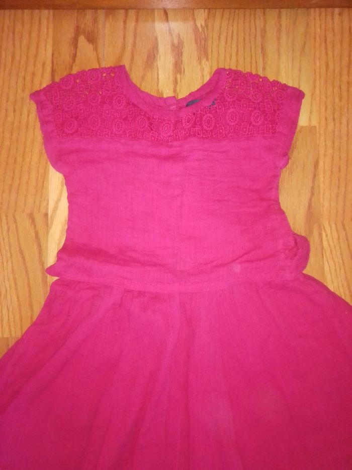 Magnifique robe 2 ans/24 mois en gaz de coton. Broderies sur le haut, entièrement doublée coton de marque In Extenso. couleur framboise rouge En très bon état Prix ferme merci