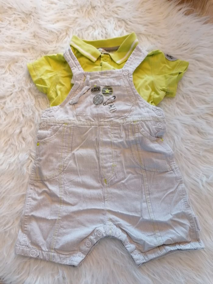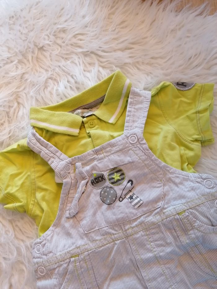 Coucou à tous Ensemble orchestra composé d'une salopette avec un polo taille 9 mois en très bon état