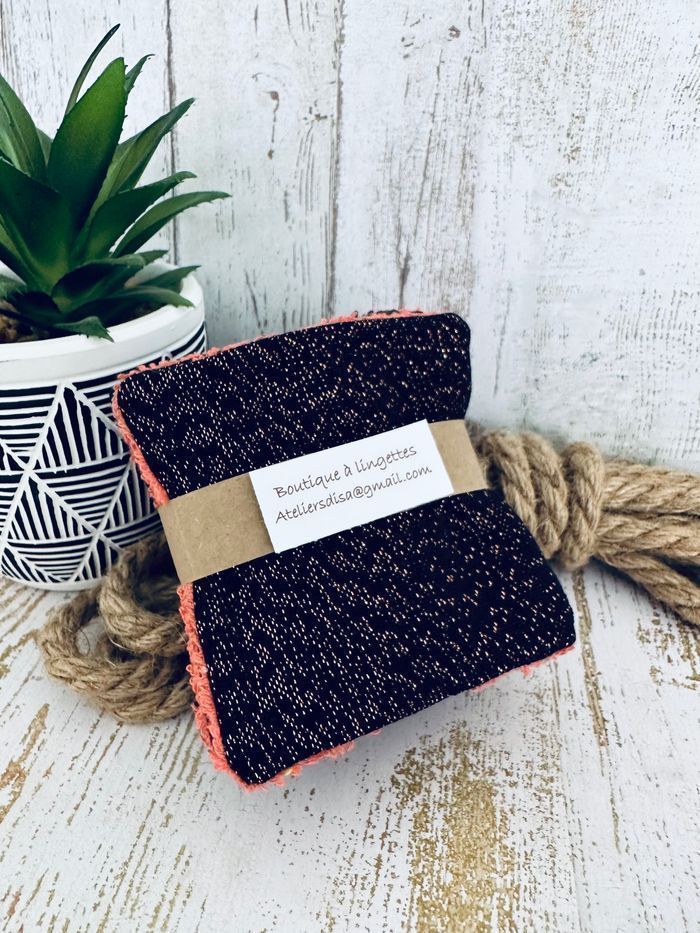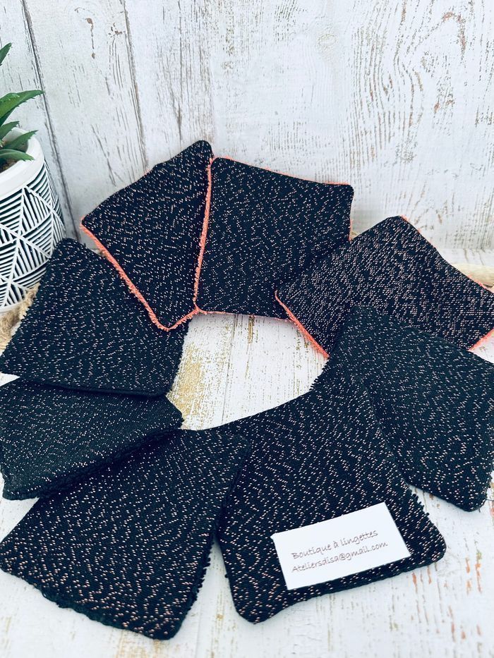 Lingettes lavable noir pailleté rosegold lot de 8 - photo numéro 1