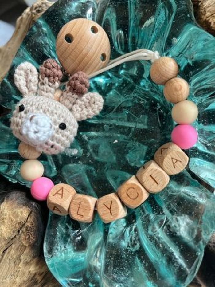 Attache tétine personnalisé en crochet , silicone ou en bois au souhait de l’acheteur . Personnalisable au choix de l’acheteur que ce soit la couleur comme le prénom ou le thème . Le fil est doublé pour plus de sécurité tout le long de l’attache tétine. N’hésitez pas à me demander et regarder mon dressing. Une photo vous sera envoyée avant l’expédition pour vous ayez un aperçu du rendu. Tous les produits sont réalisés avec du materiel spécial conçu aux bébés , enfants.