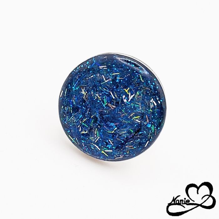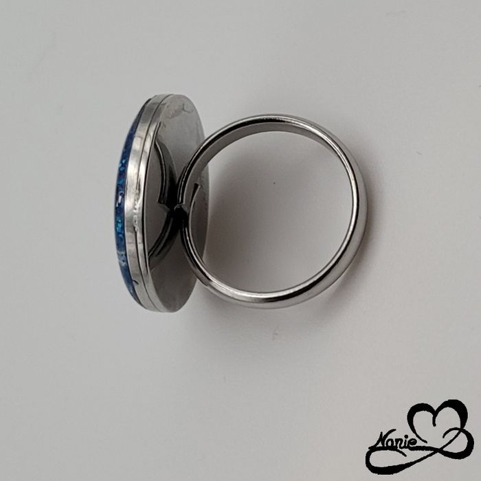 Bague ajustable ronde argentée et bleue pailletée - photo numéro 1