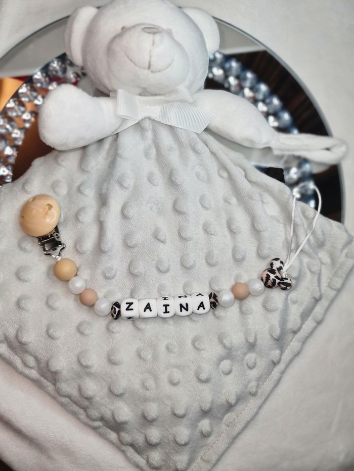 Attache tétine personnalisée Couleur et Modèl a choisir selon stock disponible 😊 Les perles sont en silicone adaptés pour bébé et conforme aux normes de l'UE. Pour la sécurité de votre enfant, toutes les attaches tétines ne dépasseront pas la taille réglementaire de 22 cm de long. (NF EN 12586 + A1) Nettoyage je vous conseille de laver à l'eau clair, ou au vinaigre uniquement ! ❌️ pas de JAVEL . N'hésitez pas à ma laisser un message avant de valider #personnalisé