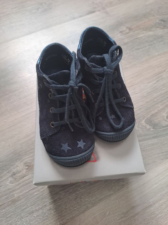 Chaussures fille en bleu daim avec étoile surbrillance.
