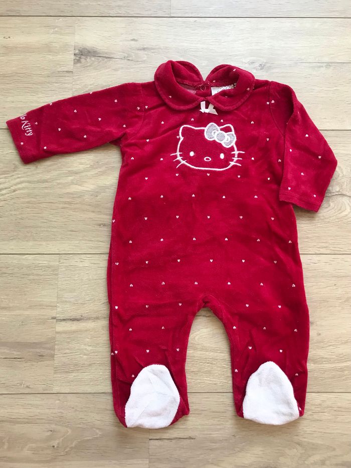 Pyjama 6M rouge bordeaux hello kitty motifs cœurs