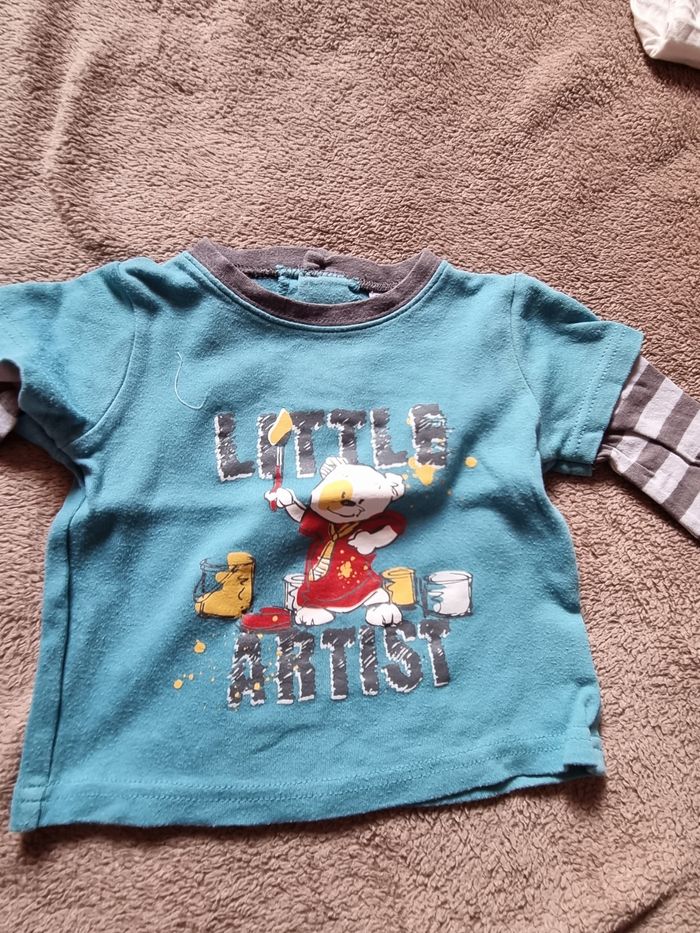 Tee-shirt ML garçon bleu gris 6 mois Très bon état