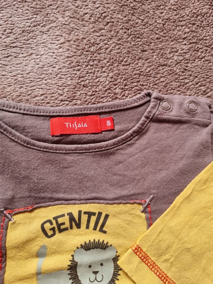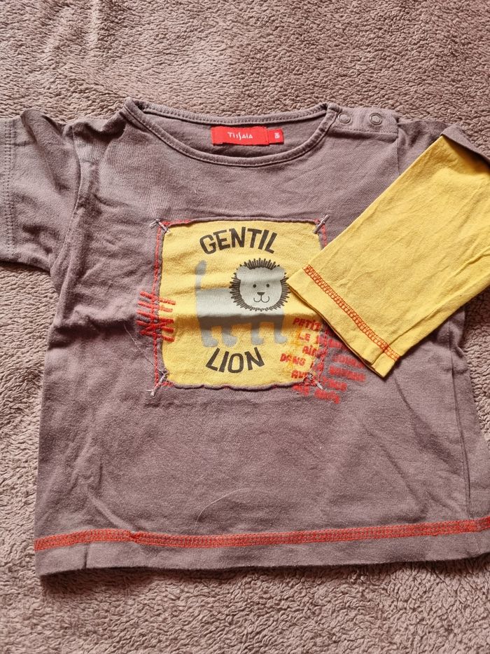 Tee-shirt ML garçon marron jaune 6 mois Très bon état