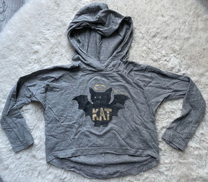 Tee shirt à manches longues à capuche de la marque Kookai Taille 4 ans Couleur gris Légères traces d’utilisation Occasion, bon état