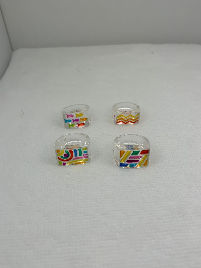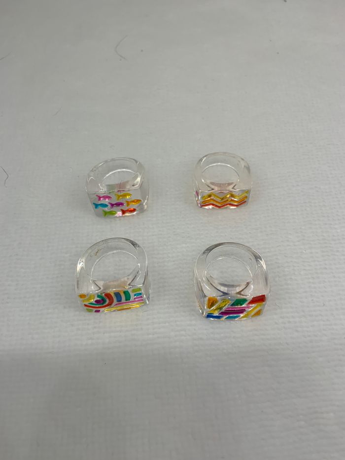 4 bagues rectangulaires enfant. Plastique. Excellent état taille unique
