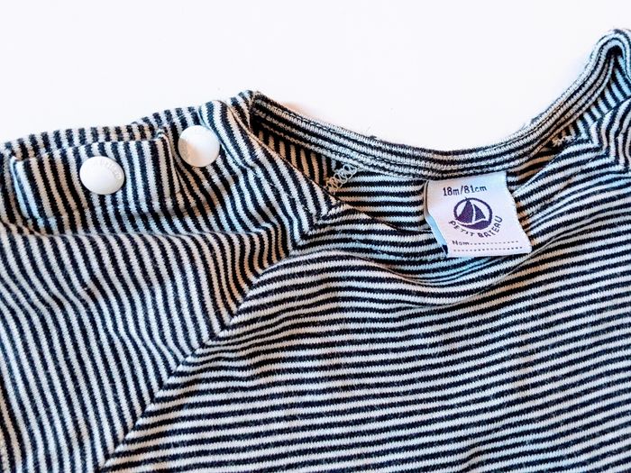 Robe manches courtes modèle iconique Petit Bateau 18 mois 81 cm Robe marinière rayée bleu marine très foncé blanc Jersey coton moyennement épais Joli noeud papillon sur la taille sur le côté Très bon état, porté quelques fois #yipin_bebe_18mois_garcon #yipin_bebe_18mois_fille #yipin_bebe_18mois_mixte #yipin_bebe_18mois