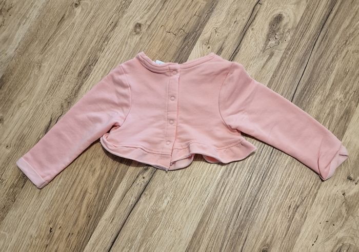 Crop top ( sweat court) Pression dos Couleur rose Matière coton Écriture "love" Matière éponge LVE le O est un smiley broder Taille 9 mois / 71cm État neuf