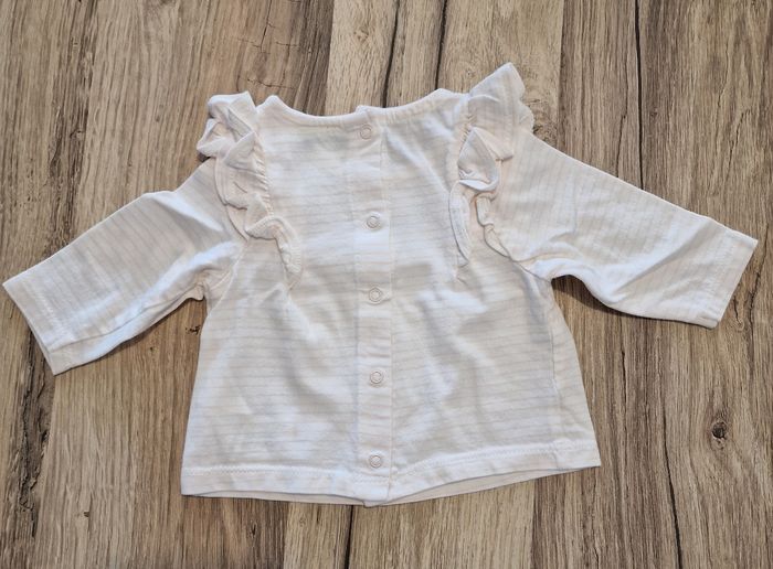 Tshirt manche longue Matière coton Couleur blanc ligné abricot Boutonnière pression dos Taille 3mois / 59cm Très bon état