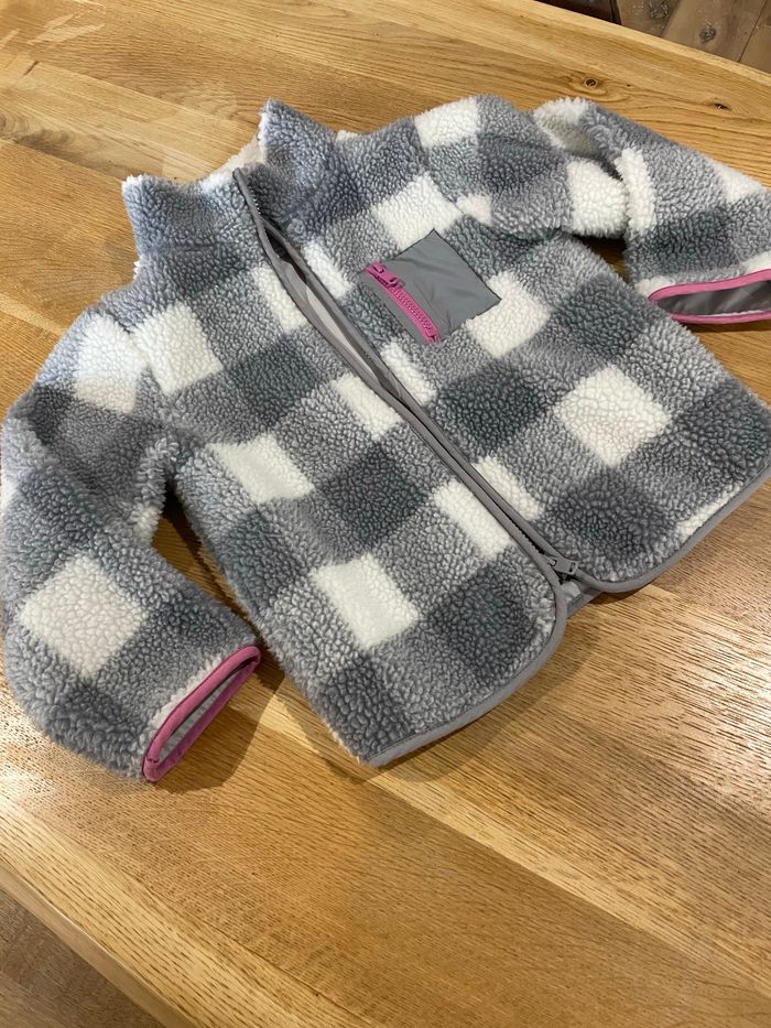 Veste à carreaux grises et blanche Parfait état Très peu porté Taille 5-6 ans