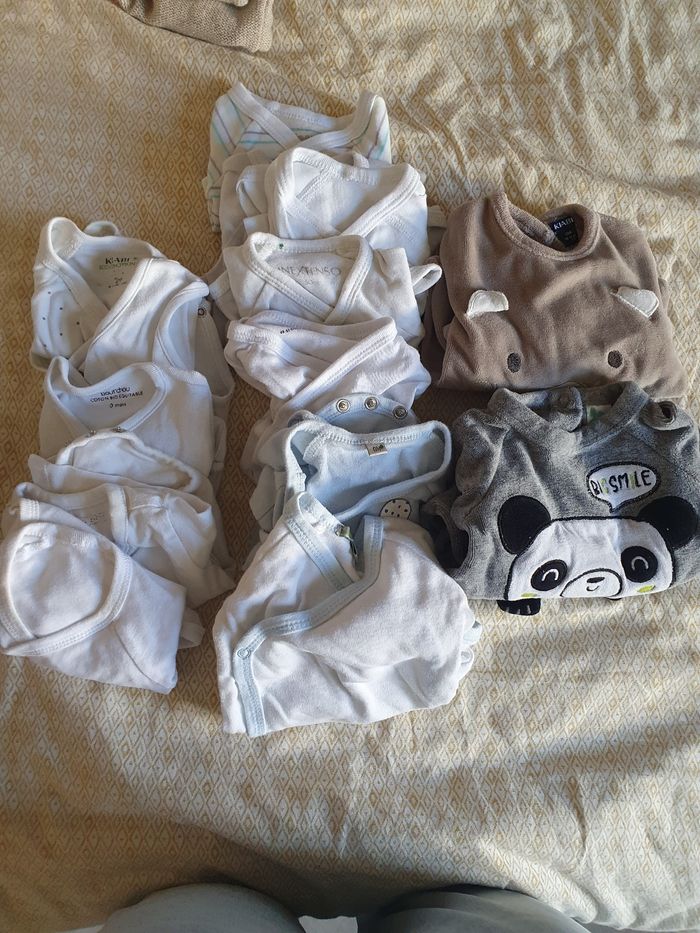 Lot de 11 bodys et 2 pyjamas marque kiabi ayant servis mais en bon etat