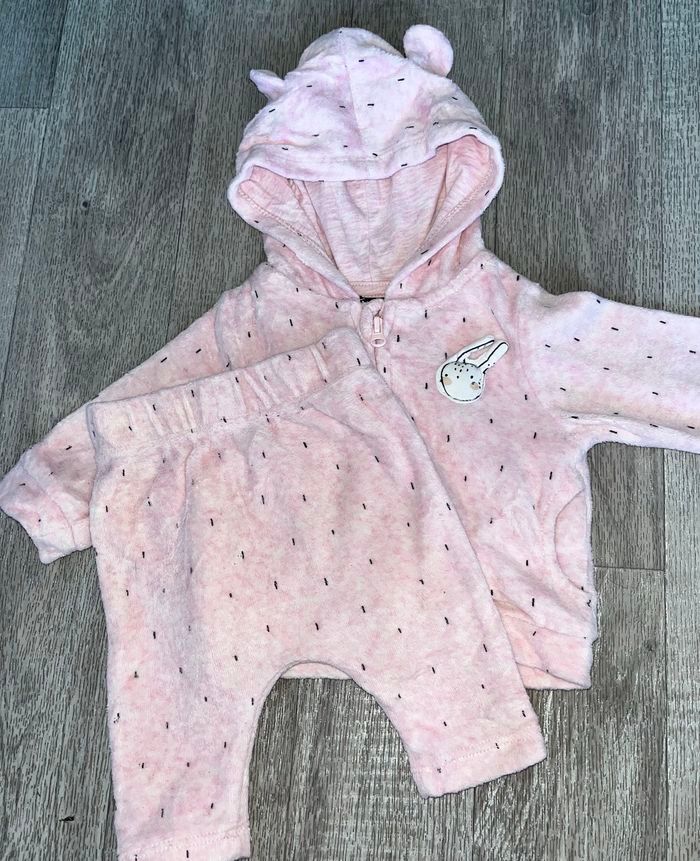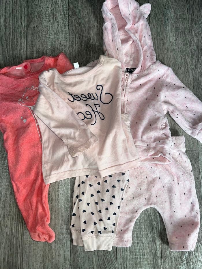 Le lot est composée d’un pyjama, un gilet 2 pantalon et un pull Couleur rose 1 mois