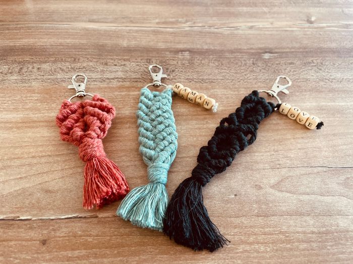 Porte clés en macramé fait main 👶🏻 Personnalisable ou non. Plusieurs couleurs au choix. Me contacter par message, ou sur mon instagram : handbraid_macramé 🧶