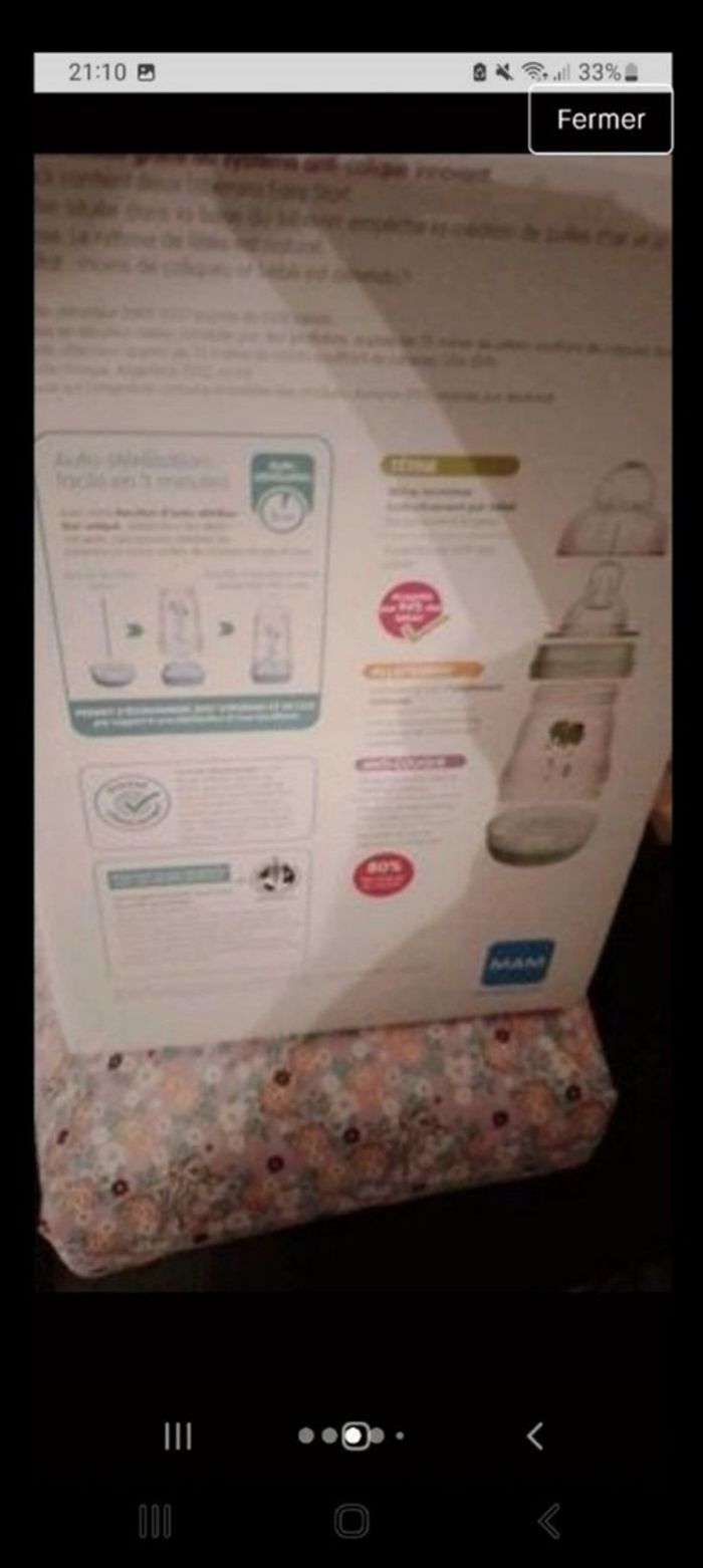 Bonjour 👋 Je vends un Tire lait électrique ET manuel MAM comme neuf utilisé trois fois tout à été stérilisés ( neuf 124.99) -Trois biberons supplémentaires MAM tres peu utilisé avec tétine 0 et 1 ( l'unité coûte entre 7 et 10 euros neuf ) -deux récupérateur de lait à glisser sous les vêtements ( valeur neuf 19.90 l'unité) -et un paquet de sachet de conservation Medela ( il en manque trois. ) Je vend le tout pour 90 euros. N'hésitez pas s vous avez des questions supplémentaires ou si vous voulez plus de photos !