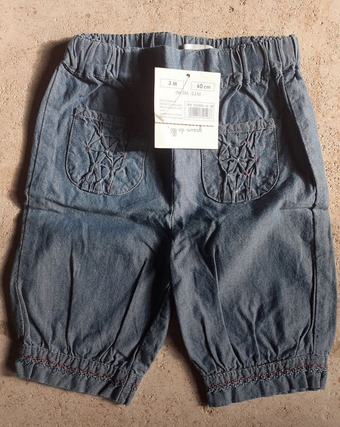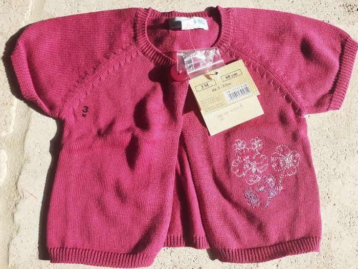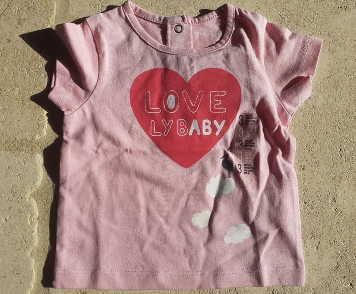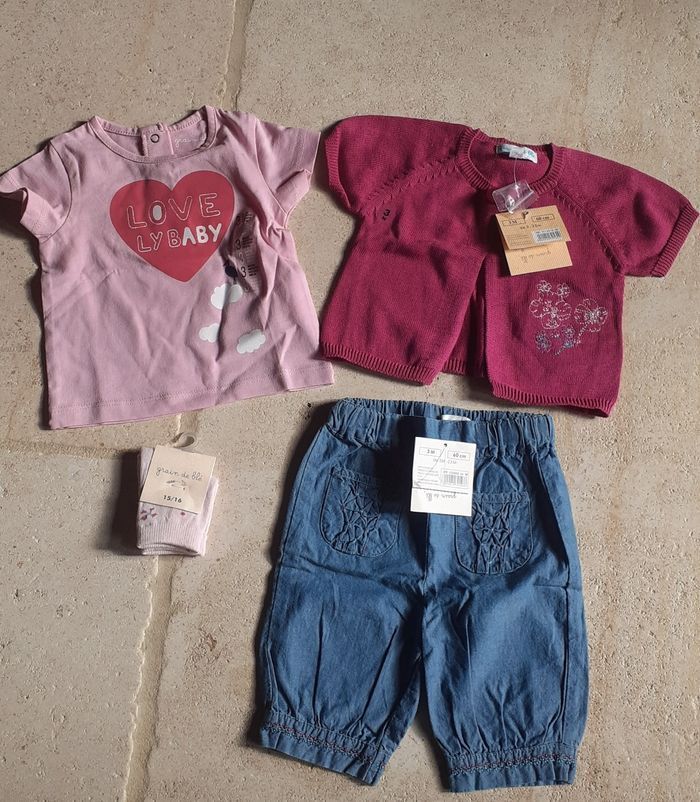 Ensemble composé de: Tee-shirt manches courtes rose avec ❤ Gilet manches courtes rose foncé Pantalon couleur jean Chaussettes rose Marque grain de blé taille 3 mois Neuf avec étiquette 🏷