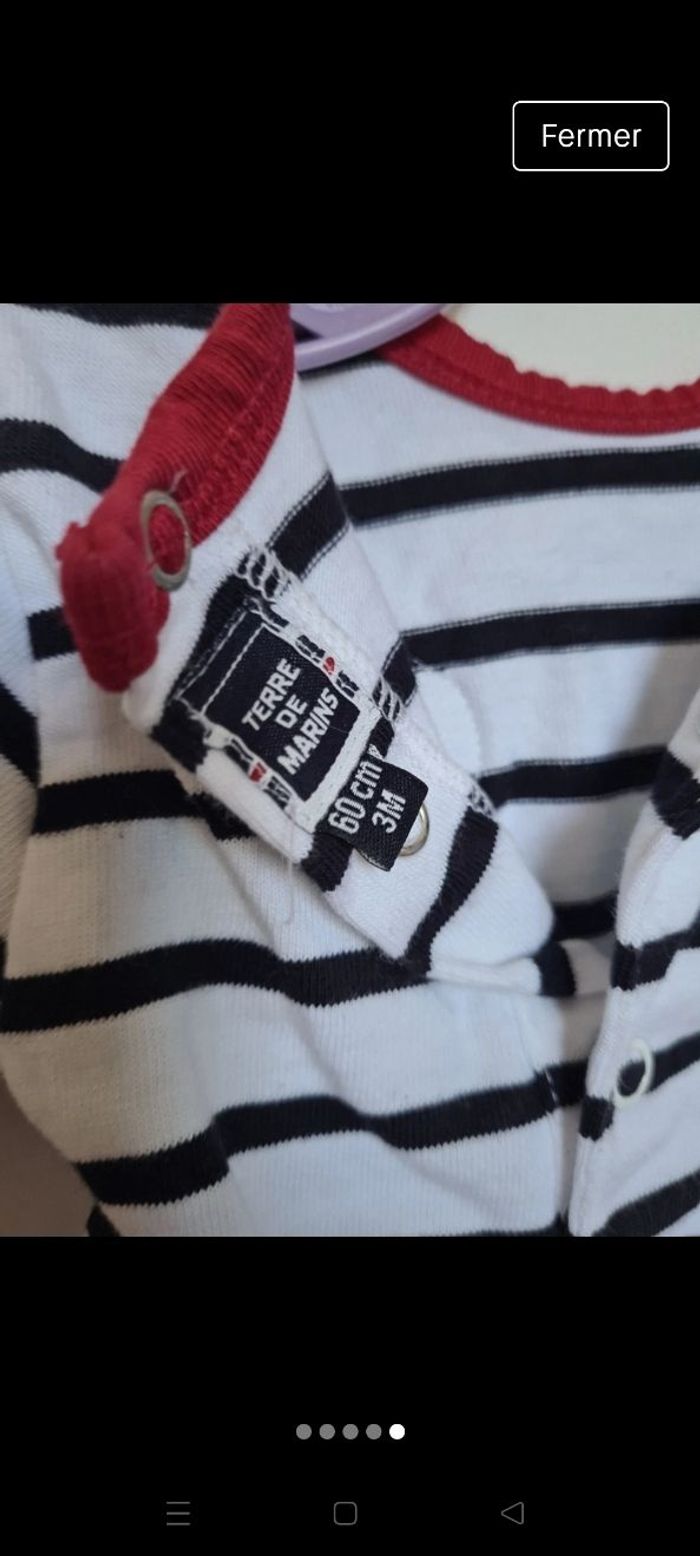 T-shirt mariniere manche longue terre de marin neuf jamais porte taille 3 mois 60 cm
