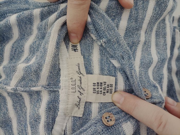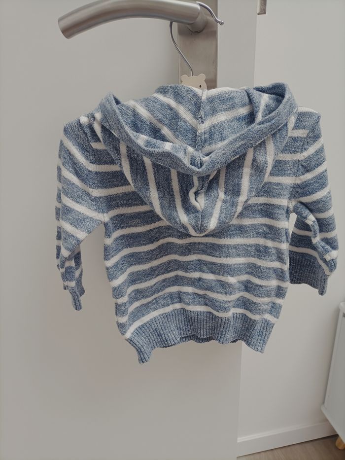 Sweat à capuche rayé bleu et blanc marque H&M 4-6 mois Bon état
