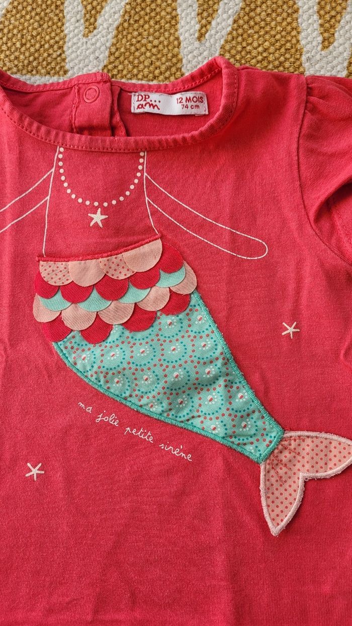 Superbe tee-shirt du pareil au même 12mois rose flash avec une sirène 🧜‍♀️