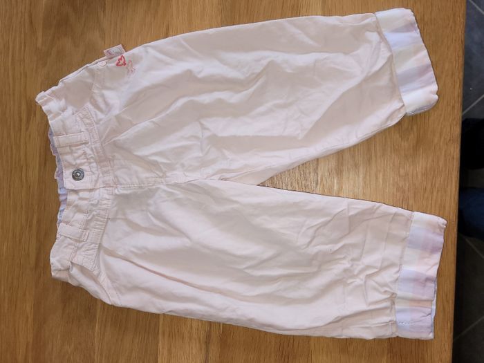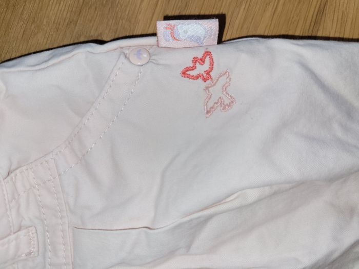 Pantalon léger rose pâle se resserre à l intérieur. Petite tâche