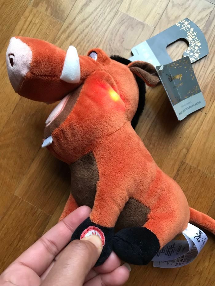 Neuve avec étiquette. Appuyer sur le bouton rouge et les joues du doudou s allume
