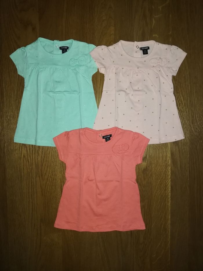 Lot de 3 hauts manches courtes avec ouverture par pression au dos. Marque kiabi. Taille 3 mois.