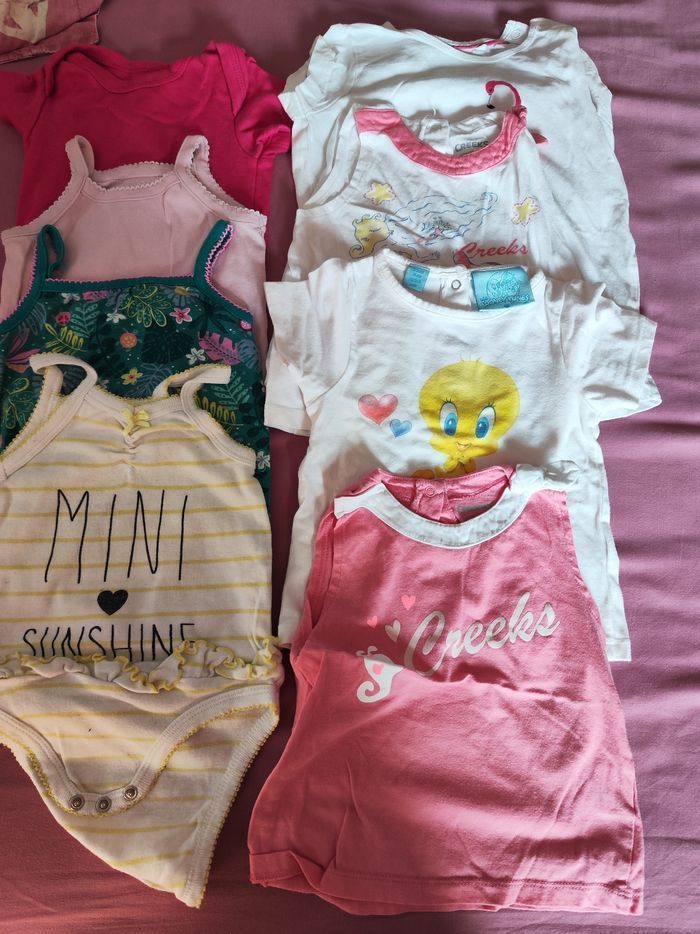 Lot comprenant 4 bodies, une salopette short, 5 tee-hirt et 4 robes