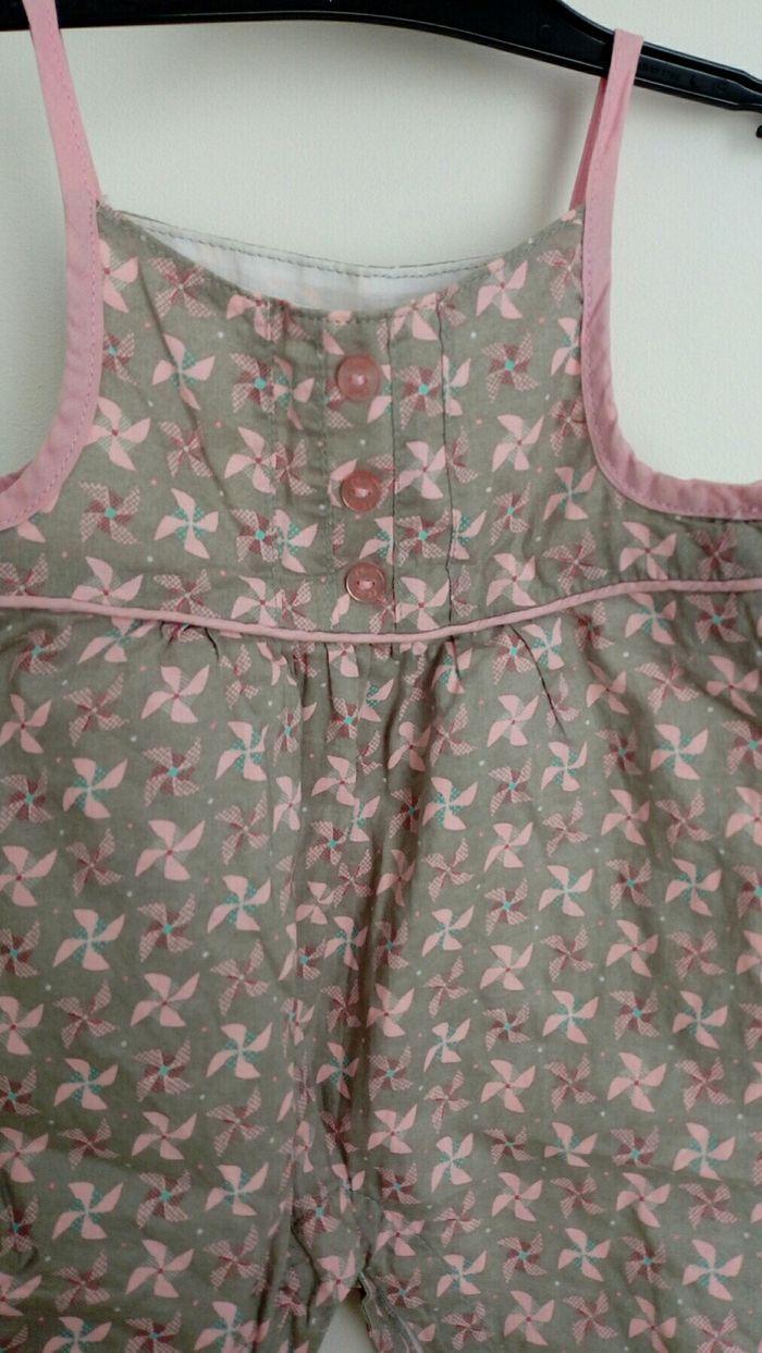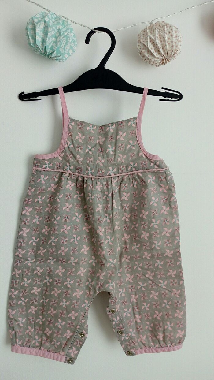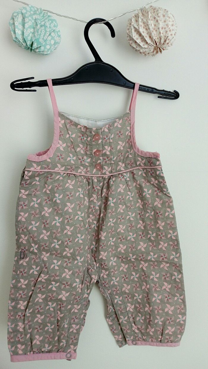 Salopette , taille 1 mois (54 cm). Boutons à pression entre les jambes. Marque Obaibi. Très bon état.