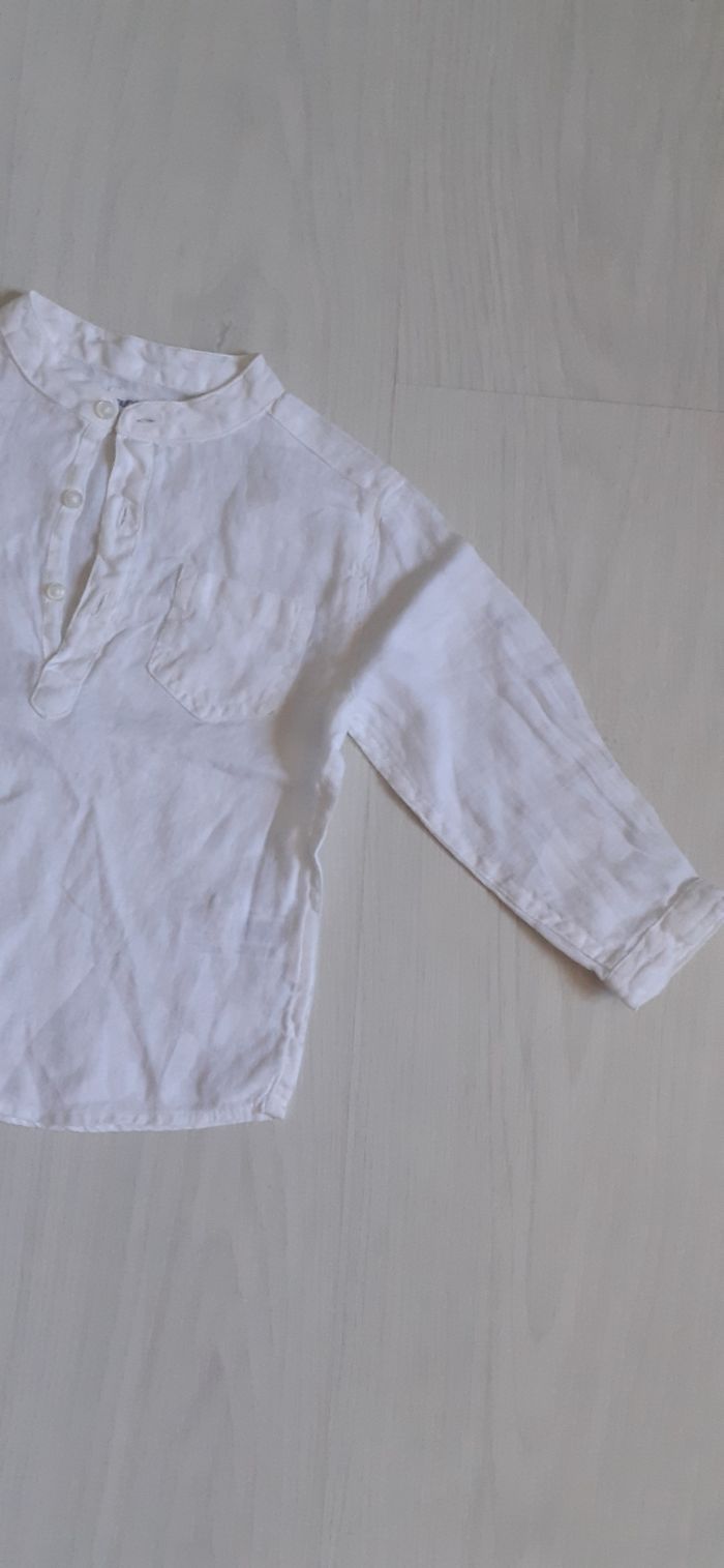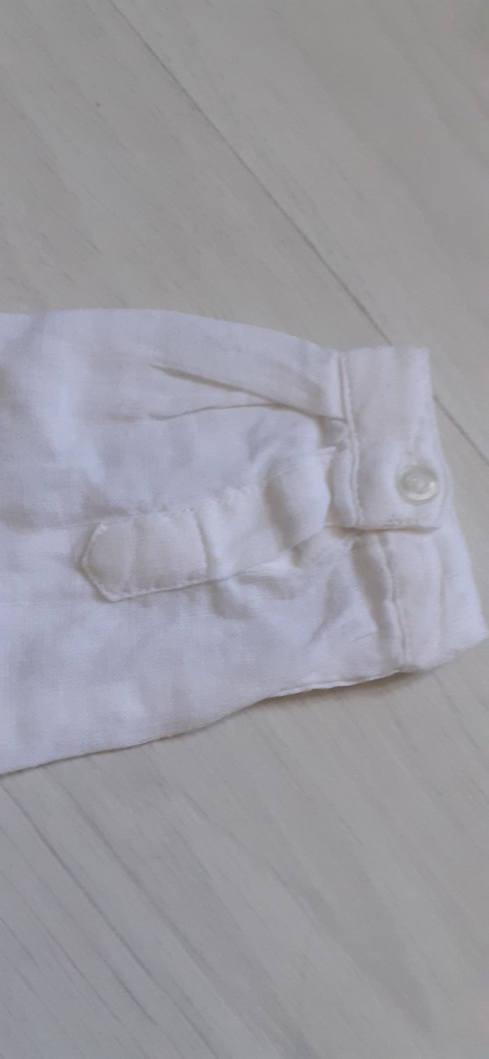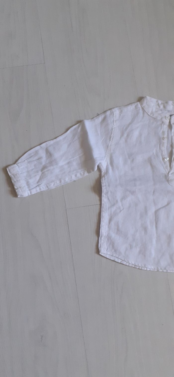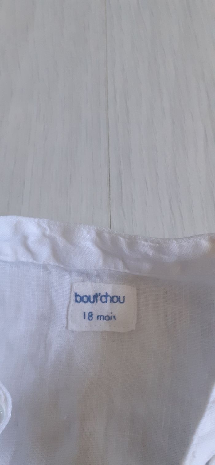 Tunique T 18 mois Marque BOUT CHOU Couleur blanche Manches longues 1 poches poitrine gauche Attache bouton mis devant 100 % lin Très très bon état