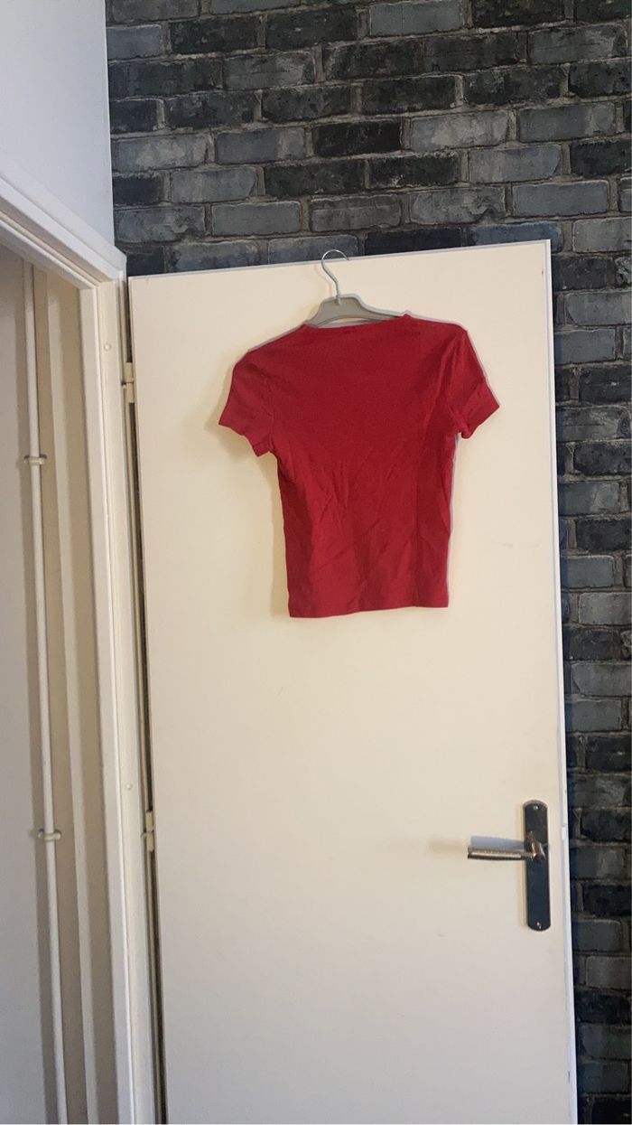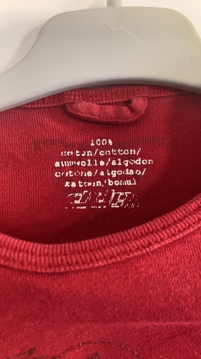 Tee-shirts manche courte de couleur rouge avec motifs et écriture sur le devant. Taille 12 ans. Le tee-shirts n’a pas de tâche, ni de trou.