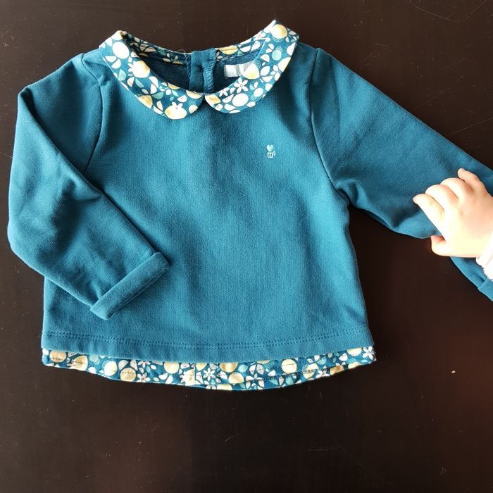 Un pantalon Petit Bateau en velour doublé jamais porté Un pull vert Okaidi neuf sans étiquette Un col roulé Tape à l'oeil jamais porté 18 mois mais taille petit Un sweat à capuche Sergent Major TBE