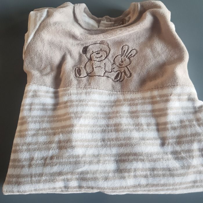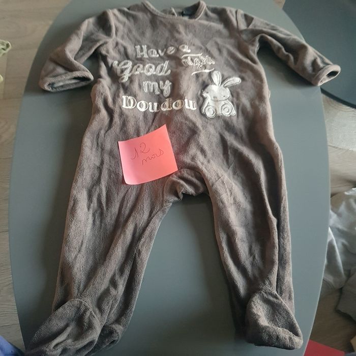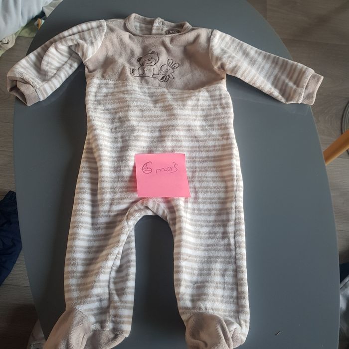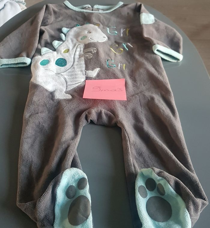 Lot de pyama marron Marron t 13 mois Beige 9 mpis Bleu 12 mois Et marron et bleu 9 mois Le pyjama marron rayé 6 mois "Les bodies sont en.bonne etat sauf le bleu marque d'usure au niveau des pieds ( voir les photos)"