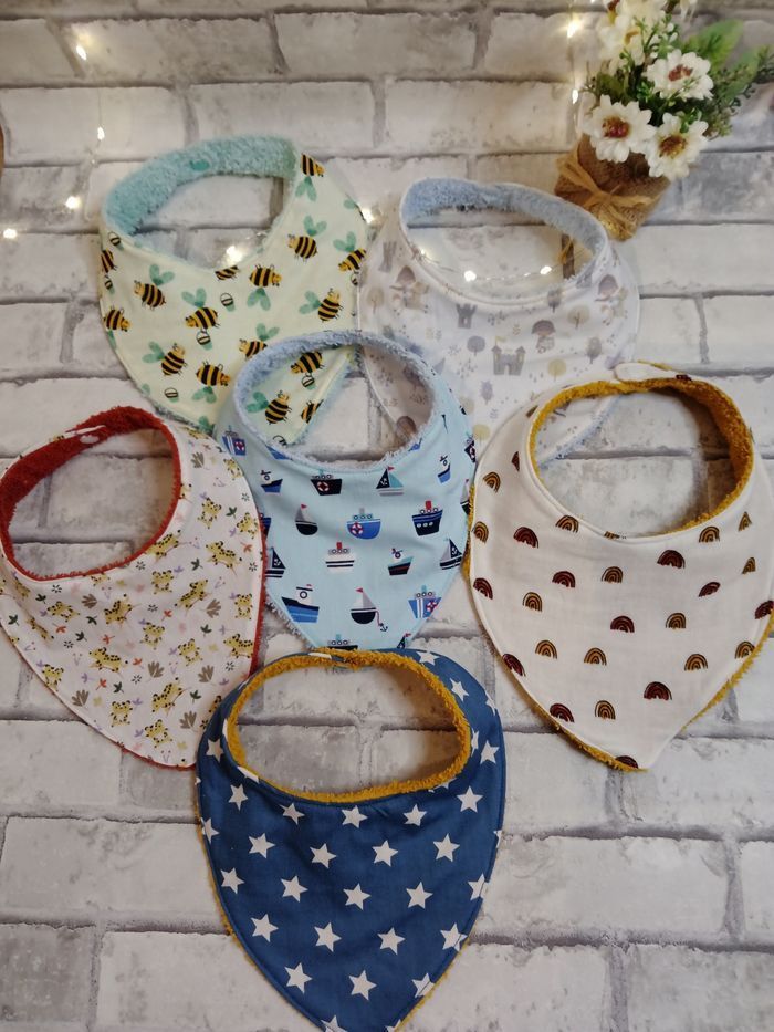 7.15€ / 2 3.85€/p Lot de 5 pour 17.05€ Une multitude de tissus possible Broderie prénom possible pour 0.5€/p