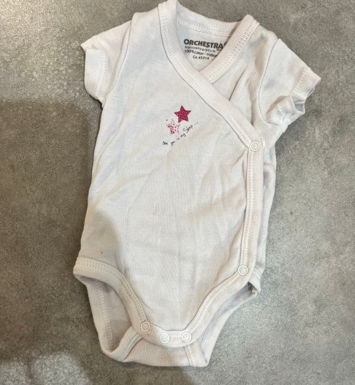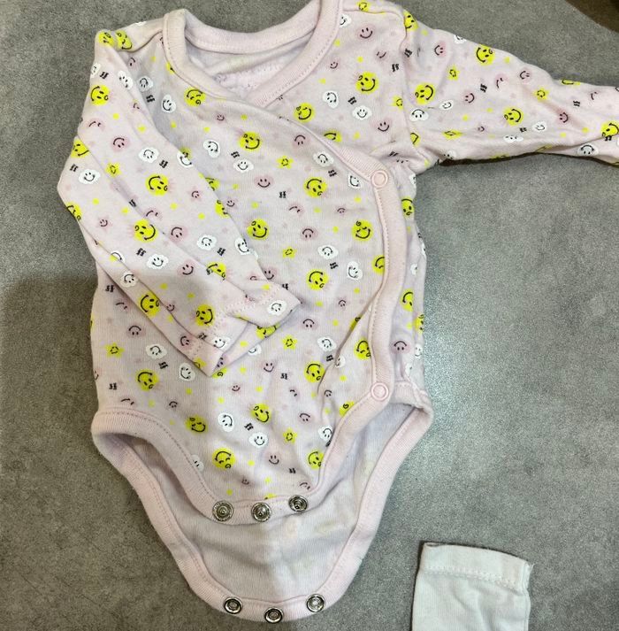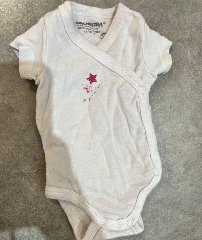 Ouverture par pression devant , taille naissance Portés 1 fois Le dernier est un kiabi neuf , juste lavé