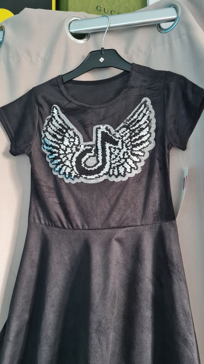 Robe noire à sequin logo tiktok Neuve avec étiquette Taille 10 ans