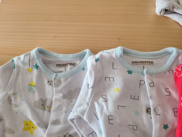 1 mois Très bon etat 2 pyjamas orchestra 1 pyjama Nihntje/miffy 2 pyjamas sans pieds Zeeman 4 bonnets naissance