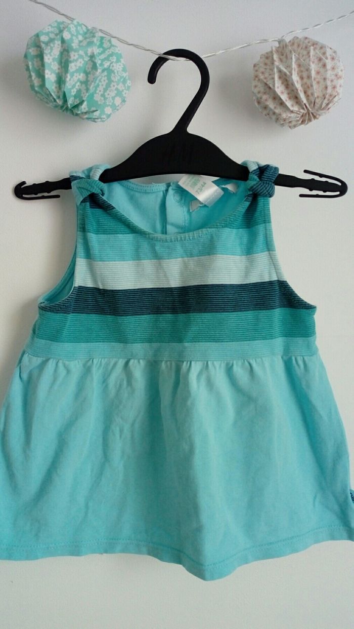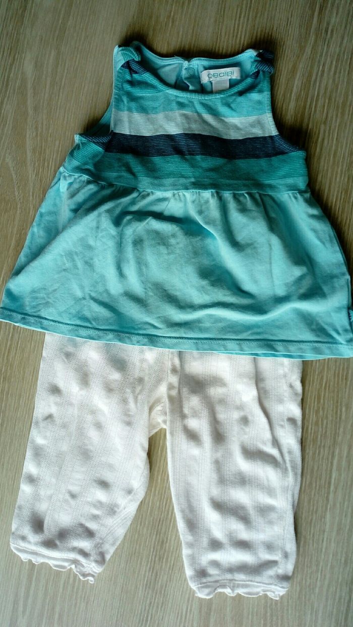 Ensemble été: débardeur (boutons à pression au dos) + pantalon. Taille 12 mois (74 cm). Marque Obaibi. Très bon état.