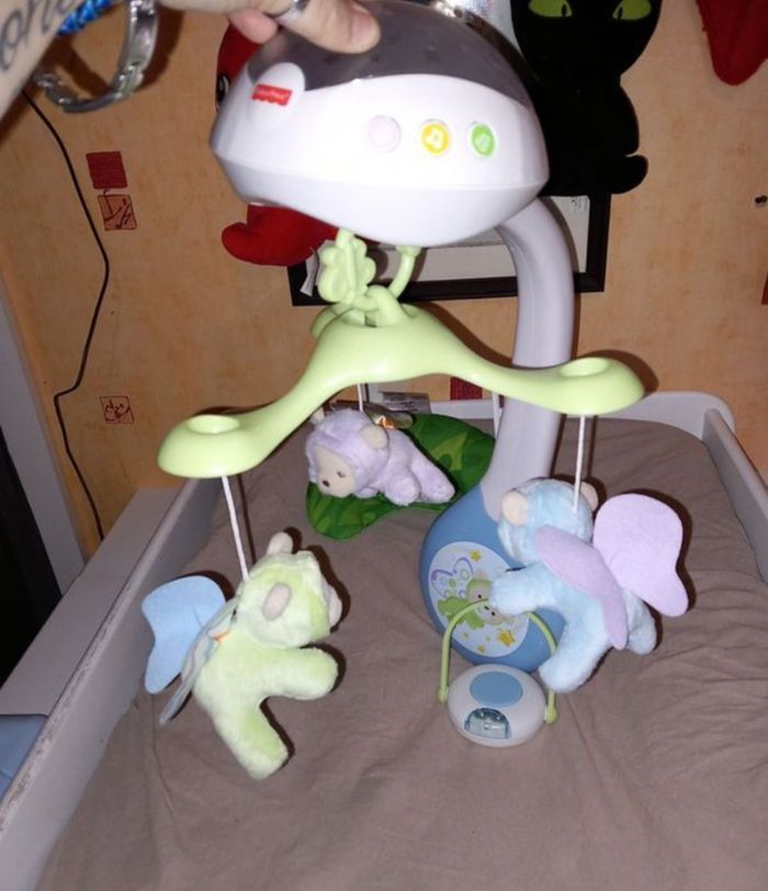 Mobile de lit avec télécommande projete de la lumière