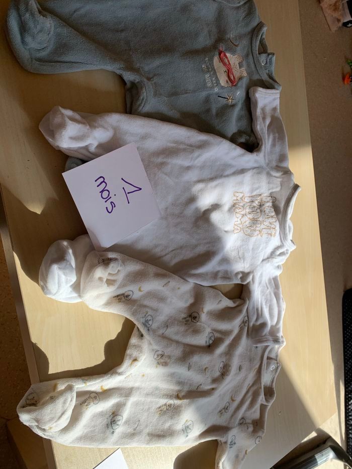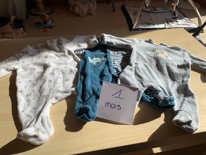 12 pyjama velours taille 1 mois en très bonne état,porter plusieurs fois mais en très bonne état