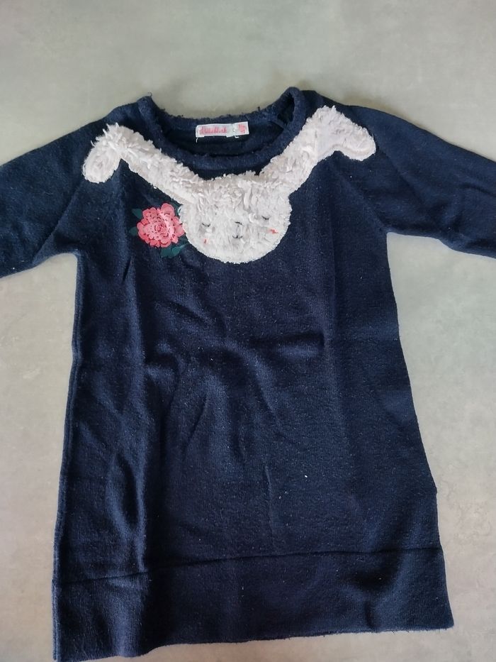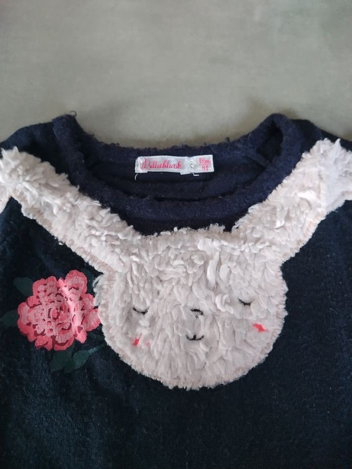 Robe pull billieblush bleu marine taille 18 mois motif lapin en relief