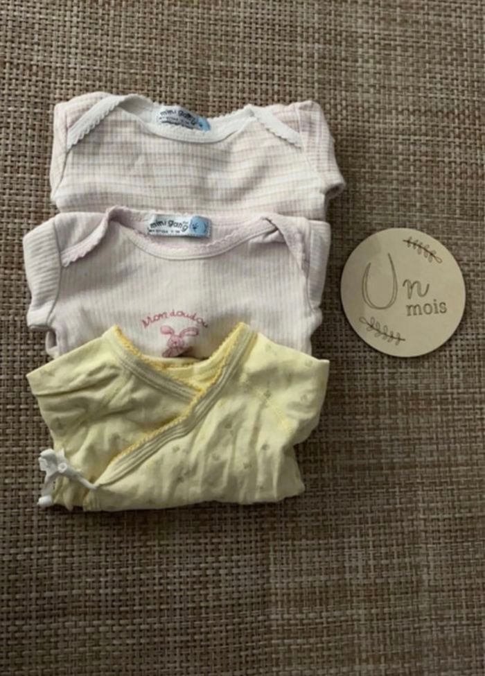 Lot de 3 bodies 1 mois 1 avec une petite tâche Envoi rapide et soigné Réduction sur les lots