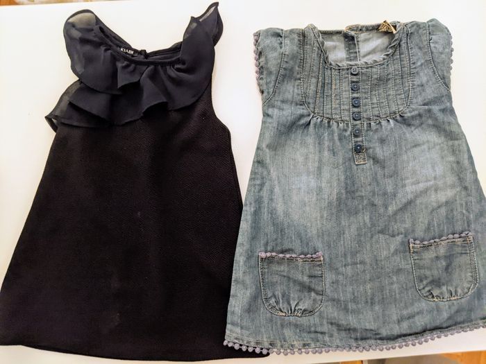 Lot de 2 robes 18 mois 81 cm 8 euros Une très jolie Kiabi bleu marine avec volants en parfait état Une en Chambray bleu clair jean 8 euros le lot de 2 robes ou 5 euros par robe #yipin_bebe_18mois #yipin_bebe_18mois_fille