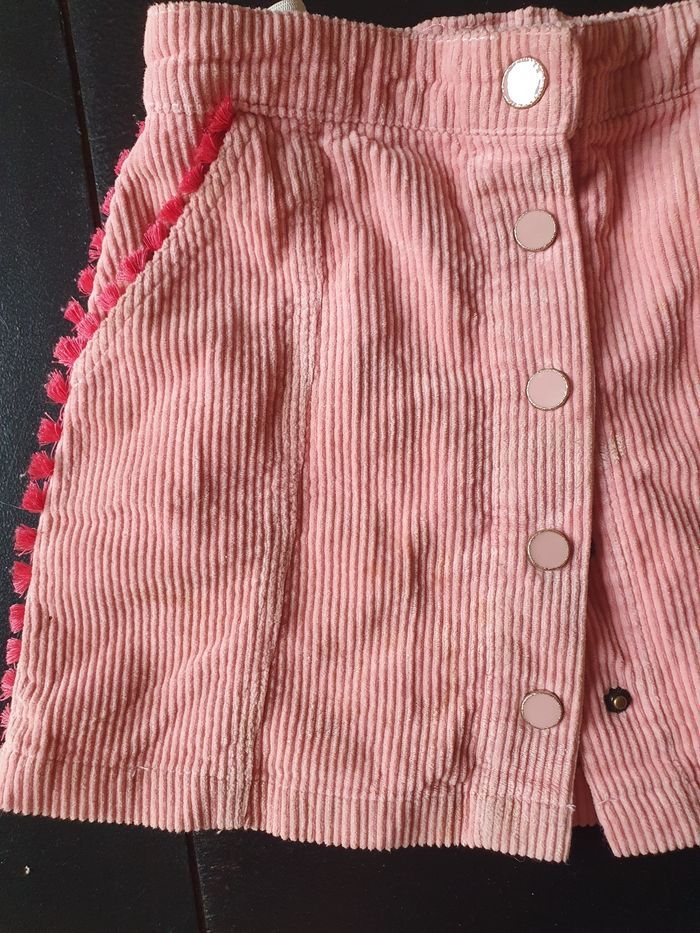 Jupe velours rose Marque Catimini 4ans Patte boutonnée devant Pressions paillettes Taille avec élastiques intérieurs de resserrage