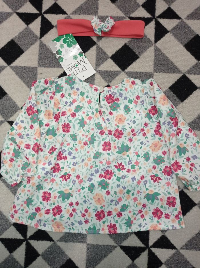 Chemise blouse + son bandeau assortis P'tit Môme Paris neuve 12mois