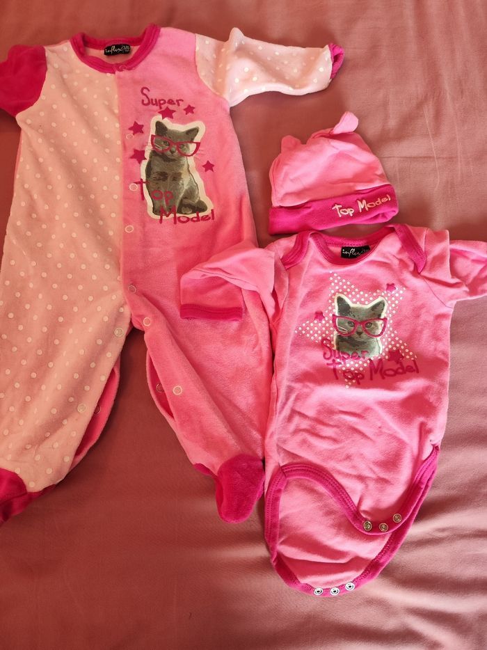 Ensemble comprenant un pyjama, un body et un bonnet
