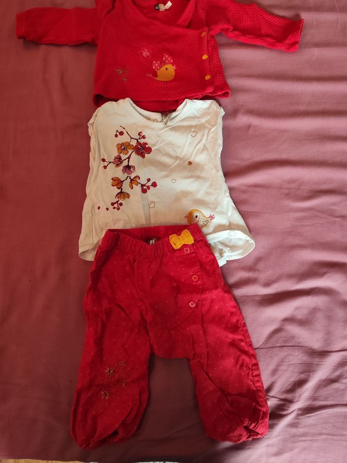 Ensemble comprenant un gilet manches longues, un t-shirt manches courtes et un pantalon
