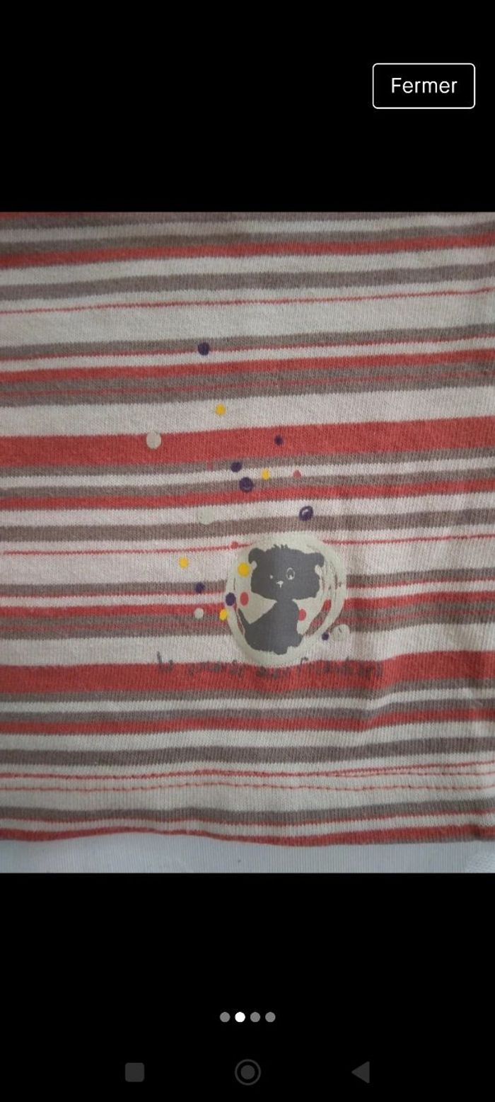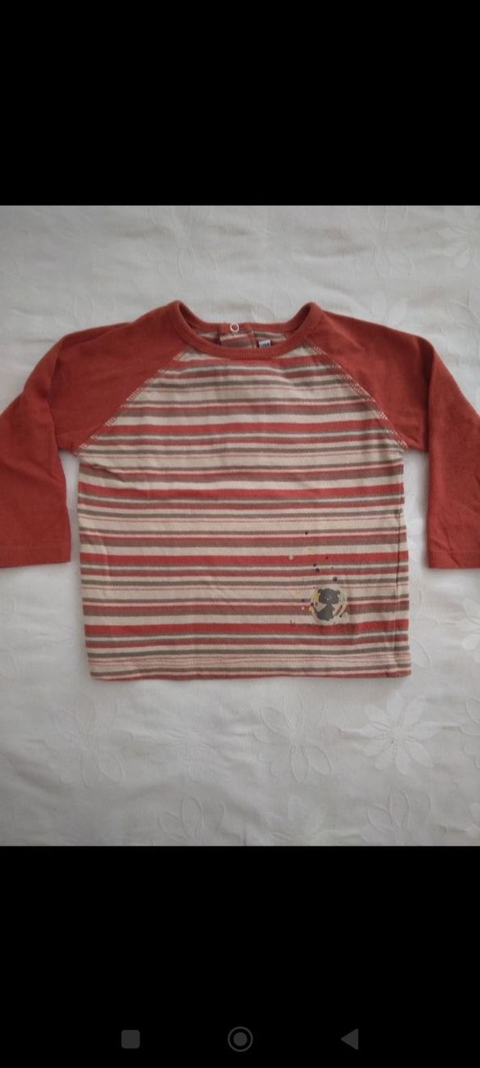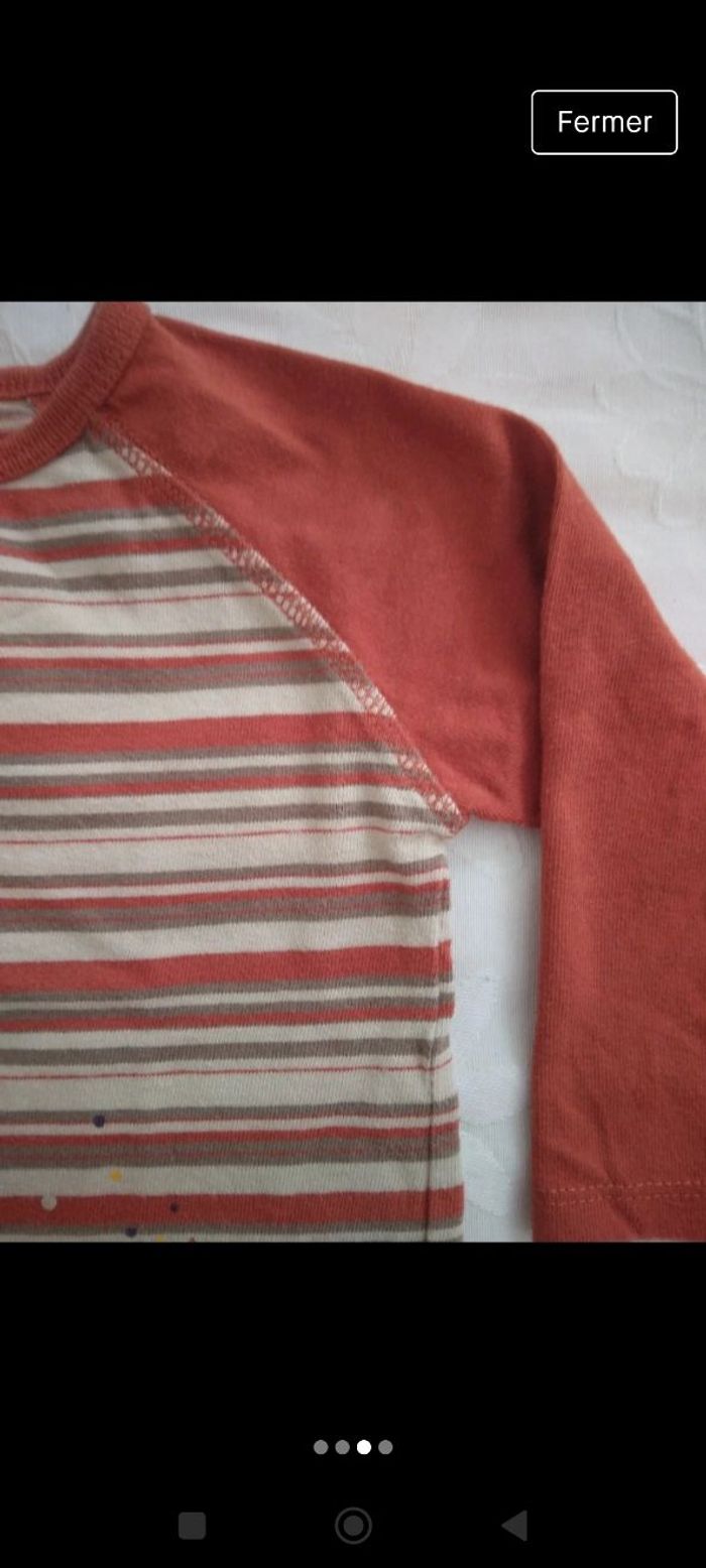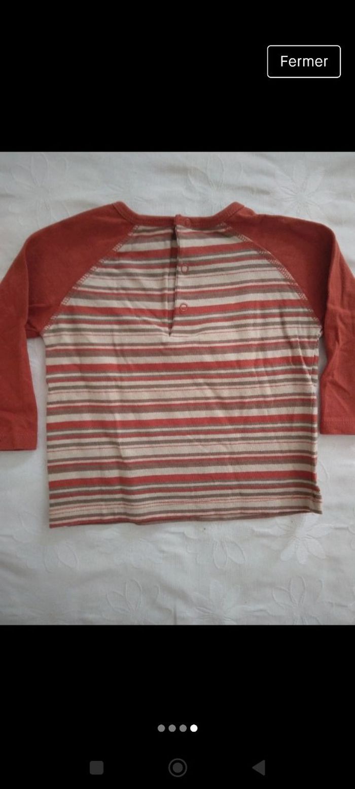 Tee-shirt orange à rayures beiges et petit motif #mariol69110garcon18mois