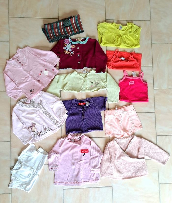 Lot de vêtements fille Taille 12 mois - 1 écharpe - 5 gilets - 5 t shirts - 1bodie - 1 short